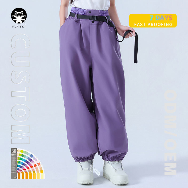 กางเกงสกีสำหรับเล่นสโนว์บอร์ดกลางแจ้งสำหรับทุกเพศ FLYSKI กันน้ำ 10,000 มม. กันลม ระบายอากาศได้ดี ตะเข็บแบบเทป กระโปรงกันหิมะแบบถอดได้