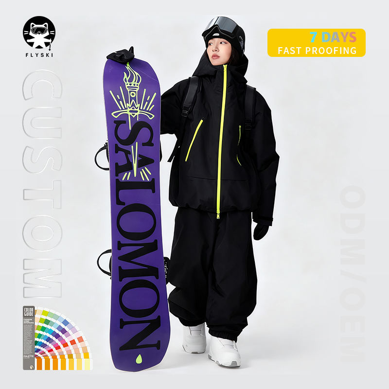 ชุดสกีแบบแยกชิ้นกันลมสำหรับผู้หญิงไซส์ใหญ่ ระบายอากาศได้ดี มีกระเป๋าซิป ลายพิมพ์ ยี่ห้อ FLYSKI ขายส่งและรับสั่งทำ