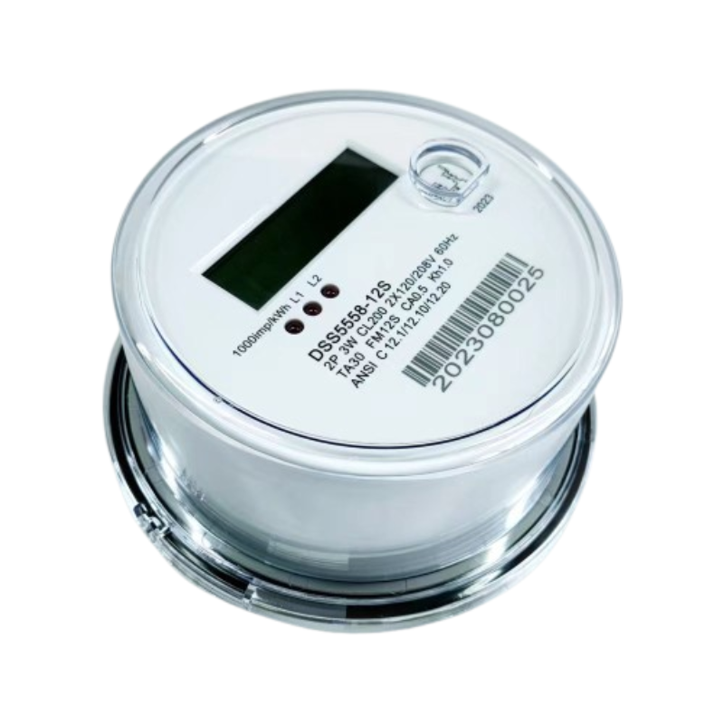 มิเตอร์วัดพลังงานไฟฟ้าเฟสเดียว FM12S แบบ ANSI พร้อมการสื่อสาร LoRaWAN จอแสดงผลคู่ ความแม่นยำสูง 120V/208V/240V ระบบคิดค่าบริการอัจฉริยะ
