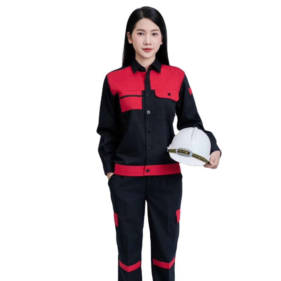 FMF Men's Hi Visibility Black Red Safety Workwear Set Long Sleeve Comfortable Breathable Durable Anti-Wrinkle Tear-resistant