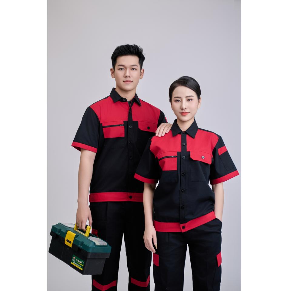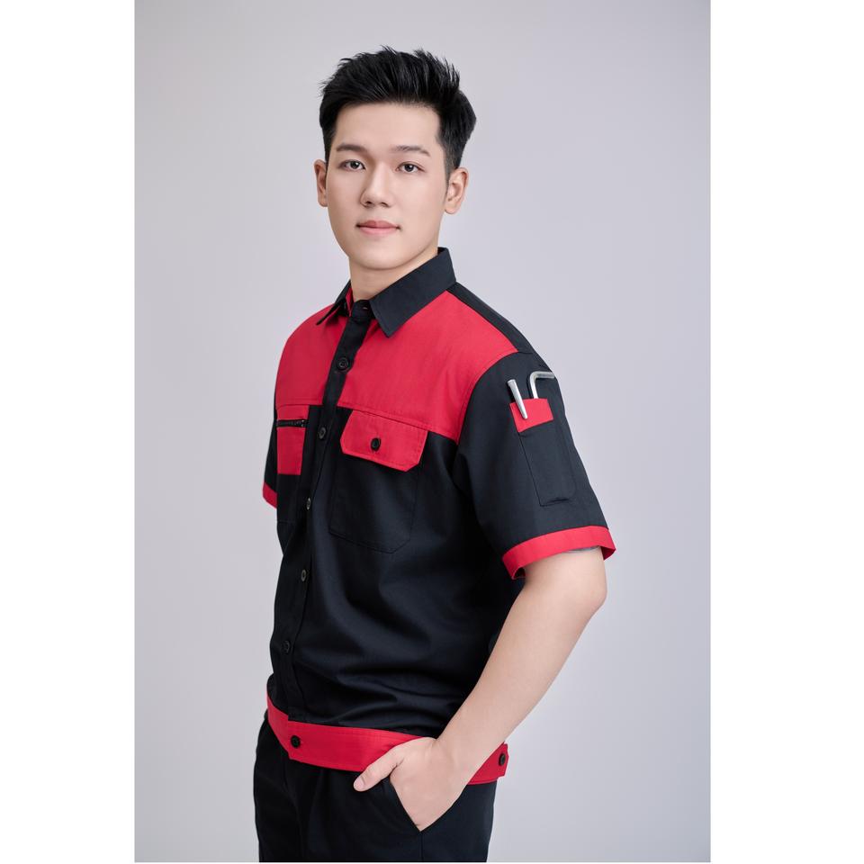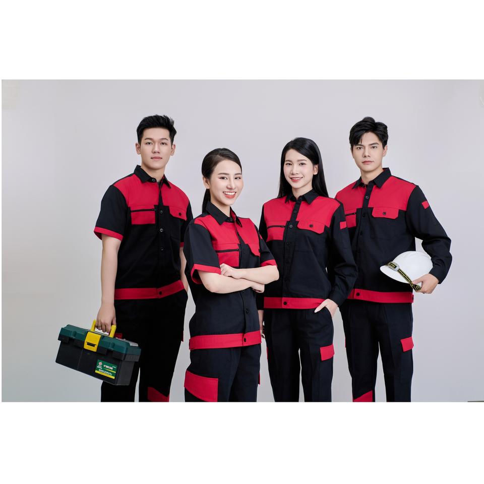 ชุดคลุมทำงานแขนยาวผู้ชาย FMF ผ้าโพลีเอไมด์ระบายอากาศได้ดี สีดำและสีแดง