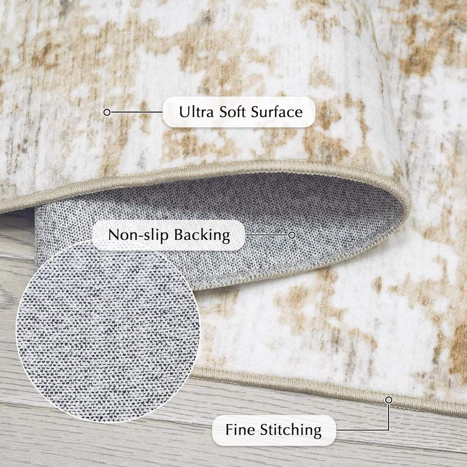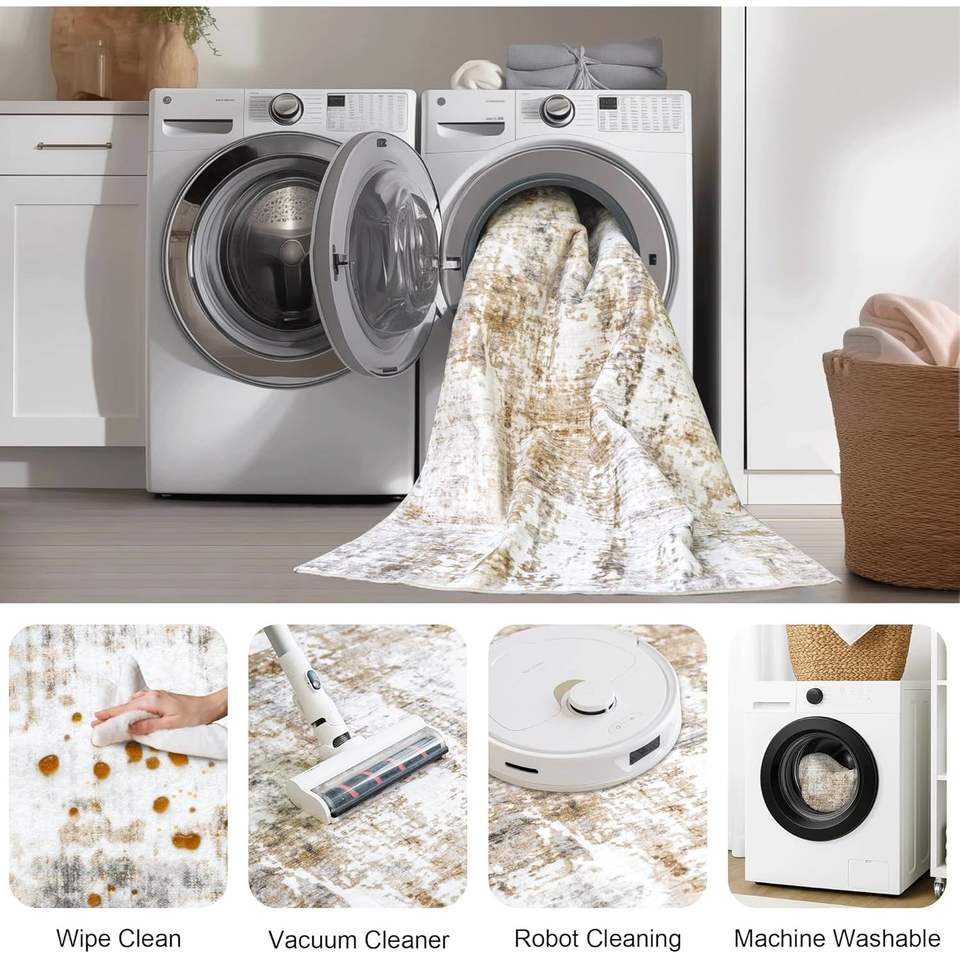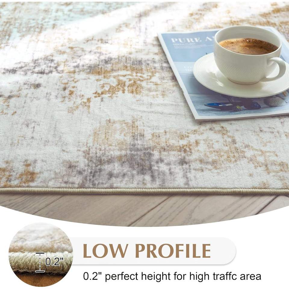 Fmfunctex พรมวิ่ง2X5แนวนามธรรมทันสมัยพรมในร่มแบบกองต่ำสีน้ำตาลสีเทาซักได้สำหรับห้องนั่งเล่นซักรีด