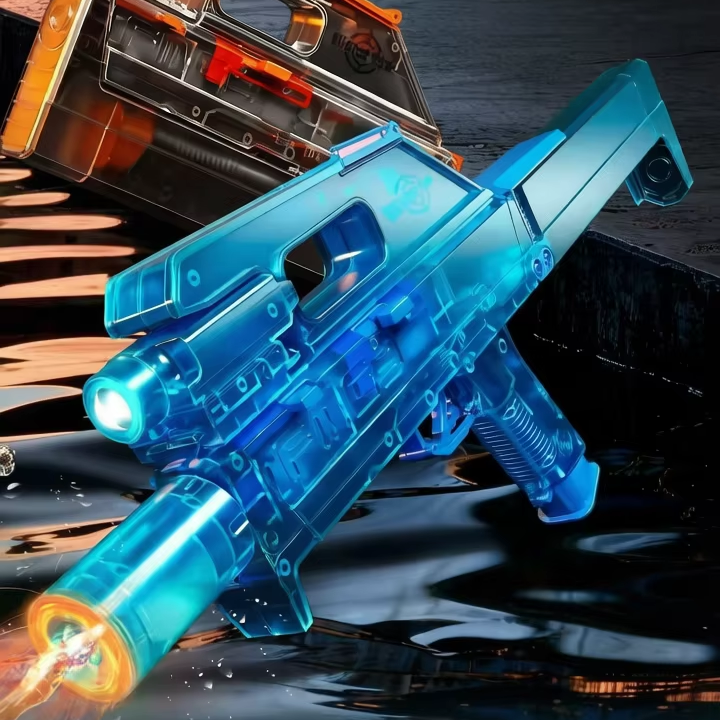 ปืนฉีดน้ำไฟฟ้าพับได้ FMG9 พร้อมไฟส่องสว่าง ปืนฉีดน้ำอัตโนมัติ ระยะยิงไกล ของเล่นปืนฉีดน้ำสำหรับเด็กผู้ชาย