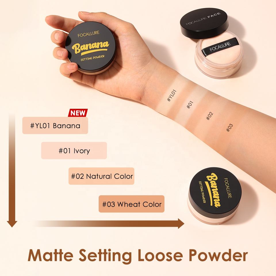 แป้งฝุ่นโปร่งแสง FOCALLURE FA15 สำหรับขายส่ง เครื่องสำอาง แป้งฝุ่นเซ็ตเมคอัพ แป้งฝุ่นกลิ่นกล้วย