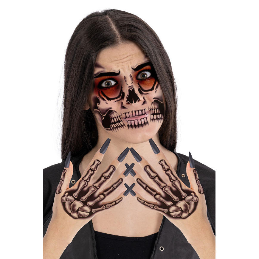 แฟ้มภาพรอยสักใบหน้าและมือรูปโครงกระดูก