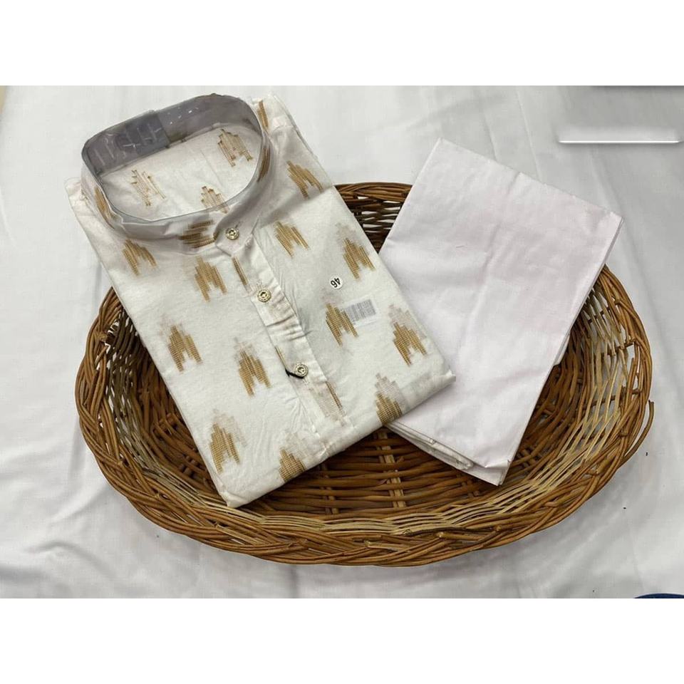ผ้าไหมผ้าฝ้ายสำหรับผู้ชายสีขาวสวมใส่อย่างเป็นทางการ