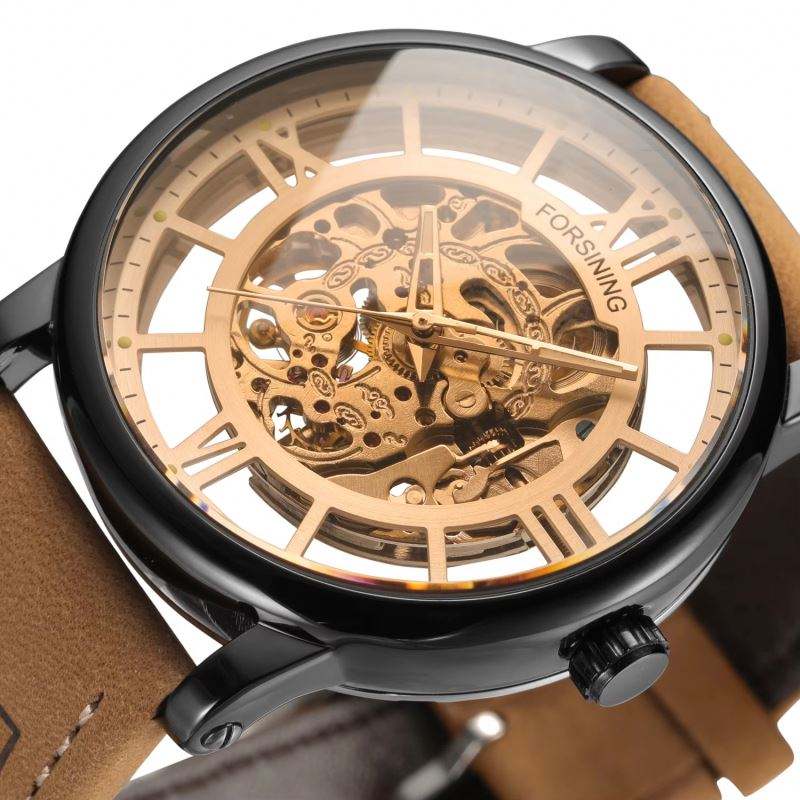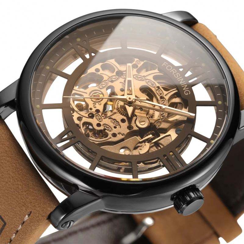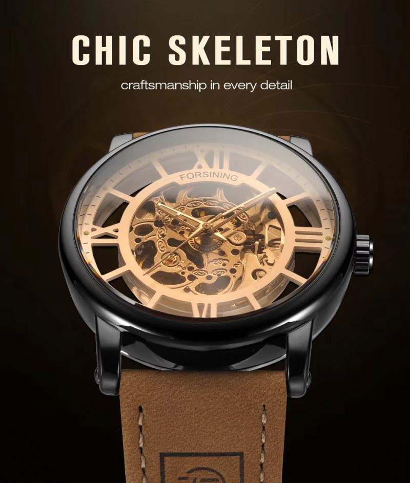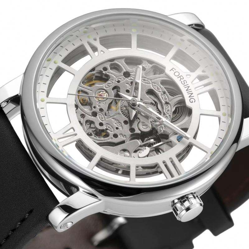 นาฬิกาข้อมือผู้ชาย FORSINING 2025 รุ่นใหม่ ดีไซน์โปร่งแสง เรืองแสง ลำลอง กันน้ำ สายหนังแท้ Relogio Masculino