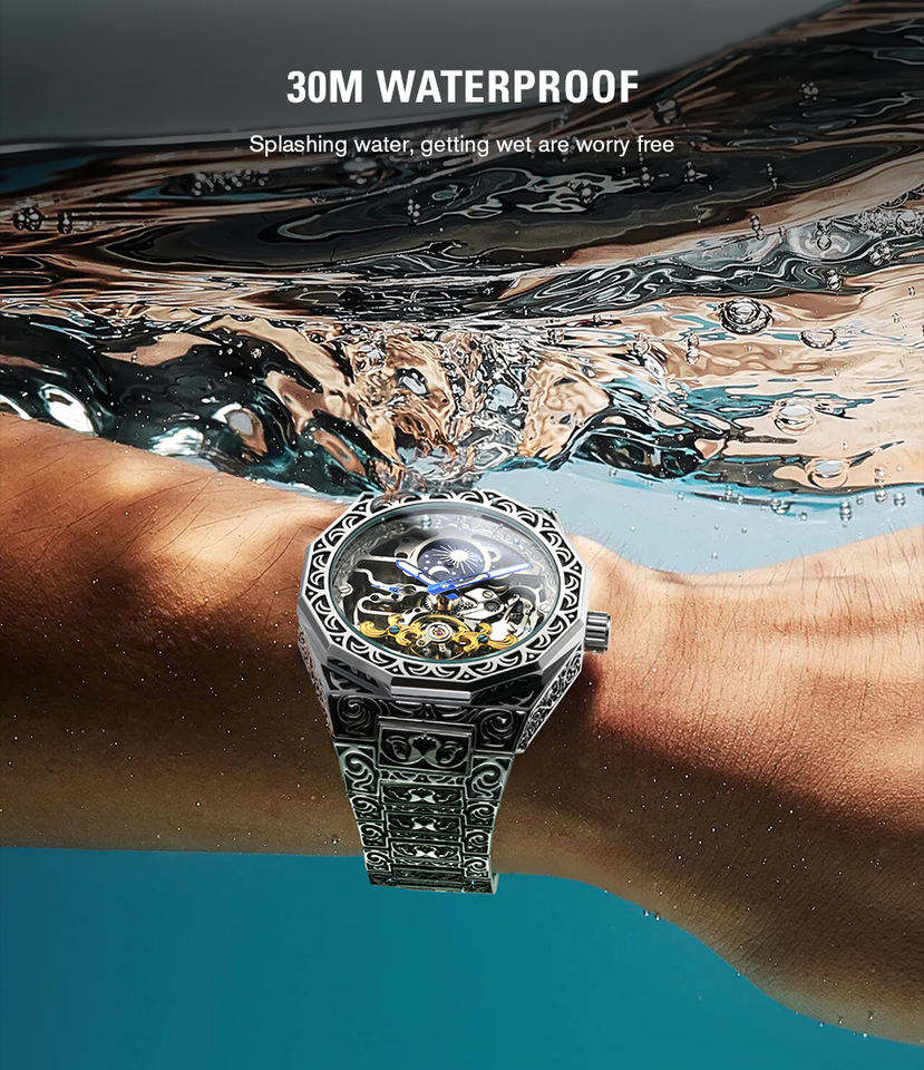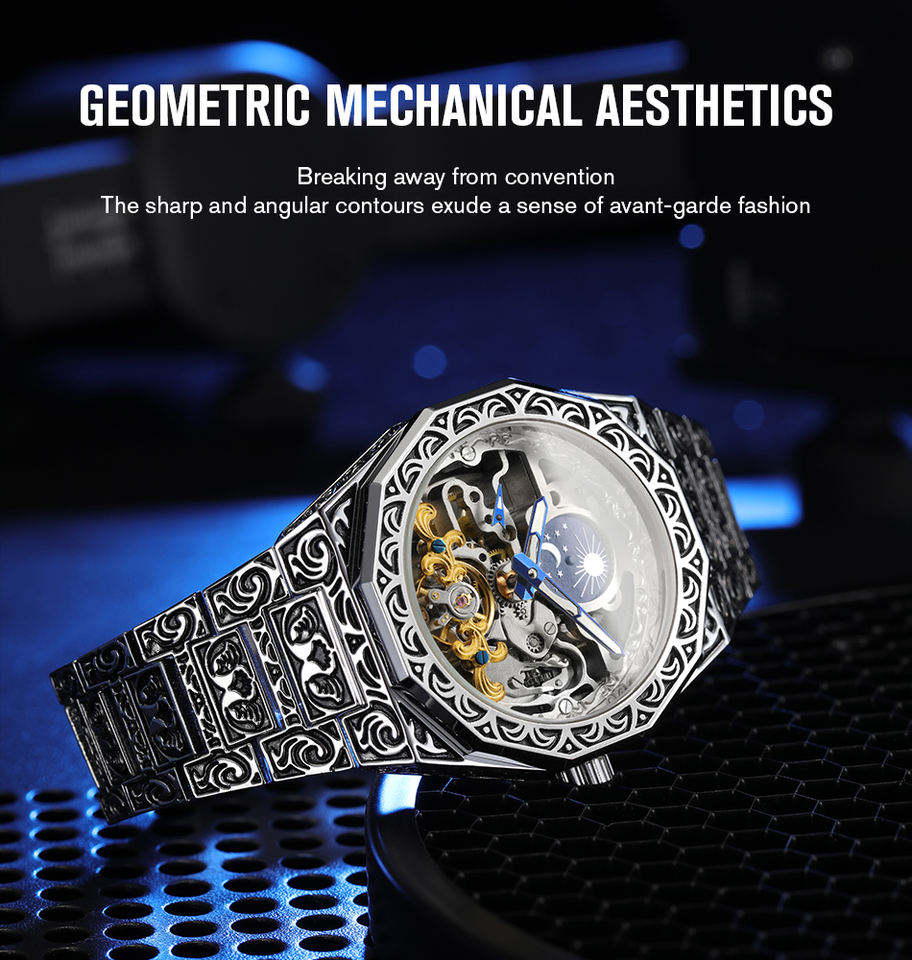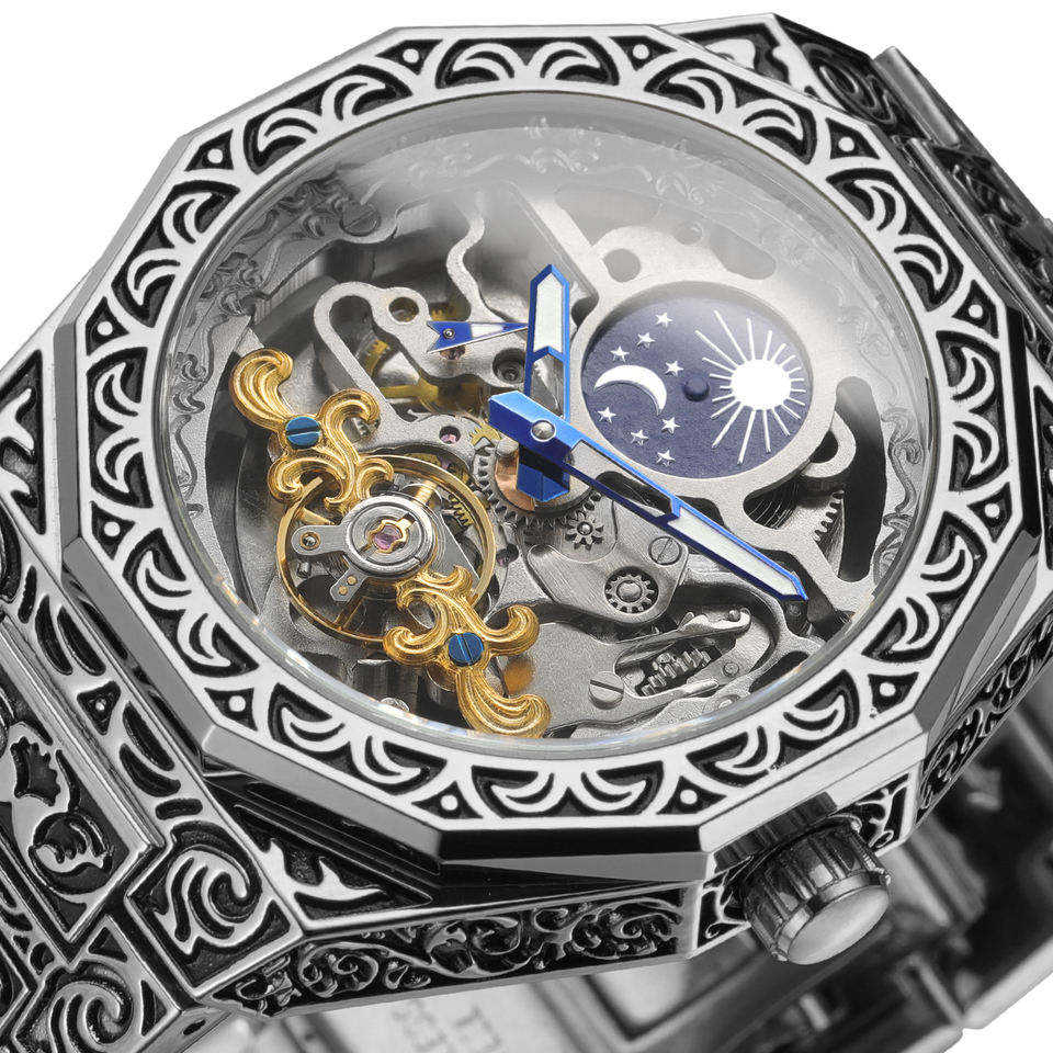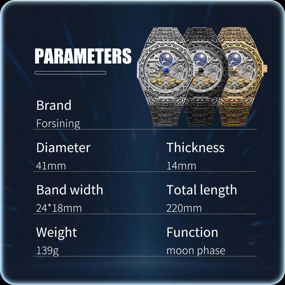 นาฬิกา FORSINING แบรนด์หรู นาฬิกาอัตโนมัติสำหรับผู้ชาย แฟชั่นหน้าปัดเปลือย ตัวเรือนสแตนเลสสตีล นาฬิกาจักรกล Relojes Hombre