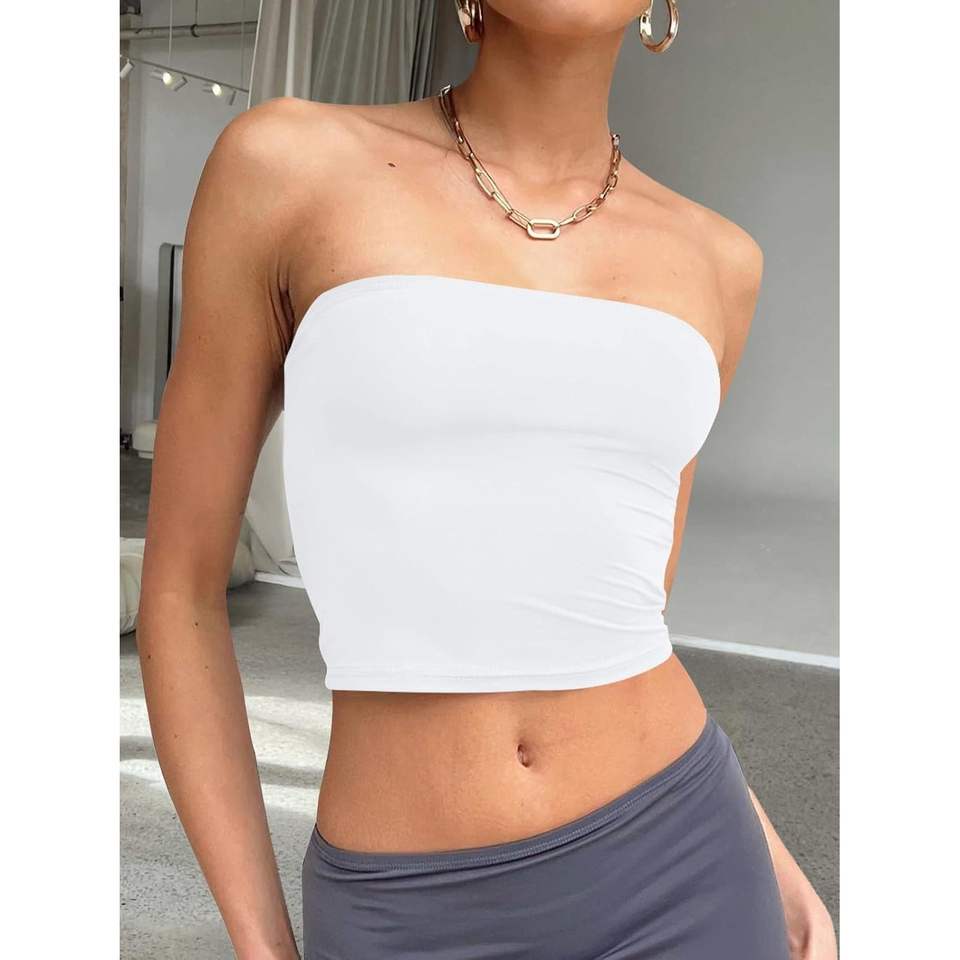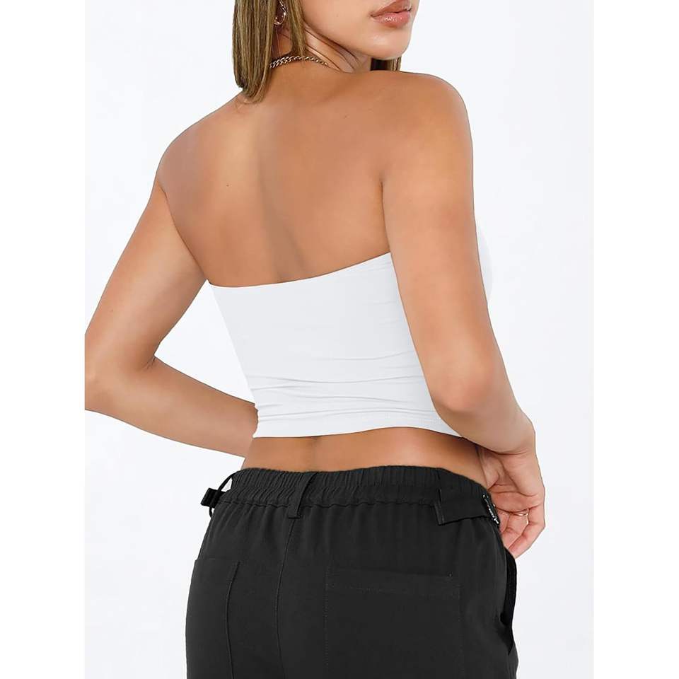 Foxa ชุดฤดูร้อน2025ผู้หญิงชุดครอปไร้สายเปิดหลังชุดเดรสลำลองน่ารักสำหรับออกไปข้างนอก