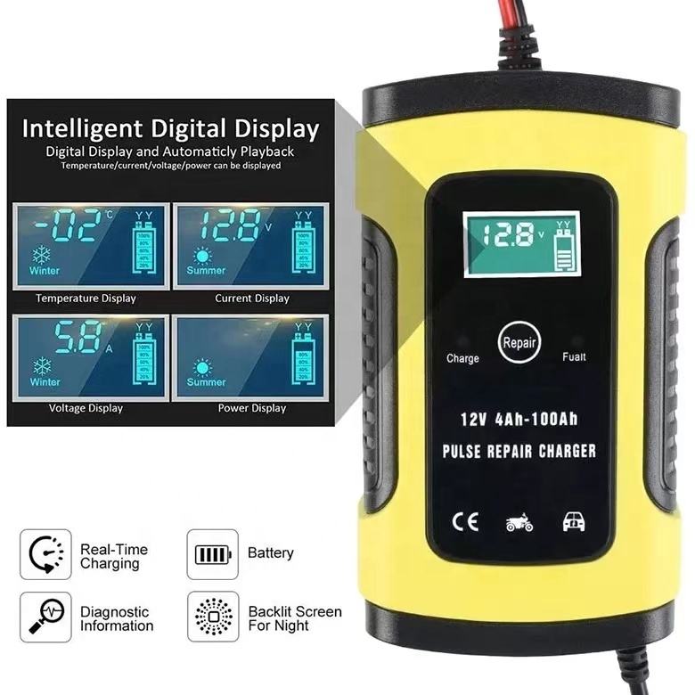 เครื่องชาร์จแบตเตอรี่รถยนต์และมอเตอร์ไซค์ FOXSUR 12V 5A พร้อมฟังก์ชั่นบำรุงรักษาและกำจัดตะกรัน, เครื่องชาร์จแบตเตอรี่อัจฉริยะ, เครื่องชาร์จแบบพัลส์ซ่อมแซมแบตเตอรี่, หน้าจอ LCD