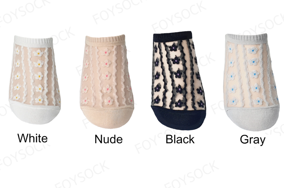 FOYSOCK KOREA Custom Embroidered Logo Oem Design Sheer Floral Lace No-Show 3D Mesh Invisible Lace Low-Cut Floral Women's Socks