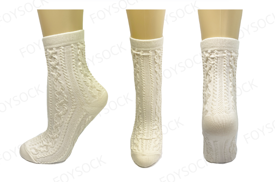 FOYSOCK KOREA OEM Cable Knit Sock Custom Logo Ankle Crew Thick Warm Wool-Blend Soft Ribbed High Quality Women's Socks