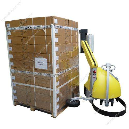 FP GLOBO Electric Stretch Wrap Robot for High Pallets Battery Powered Carton Paper Case Bag Packaging for Food Beverage Cans