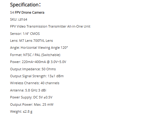 FPV กล้องส่งสัญญาณวิดีโอออลอินวัน LST-S4ไมโครกล้อง vtx และกล้องคอมโบ25mW 700TVL 48CH 120 °/150 ° FOV