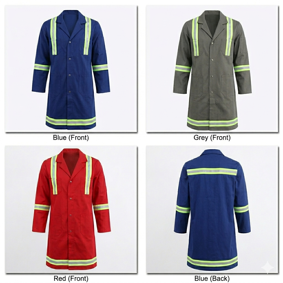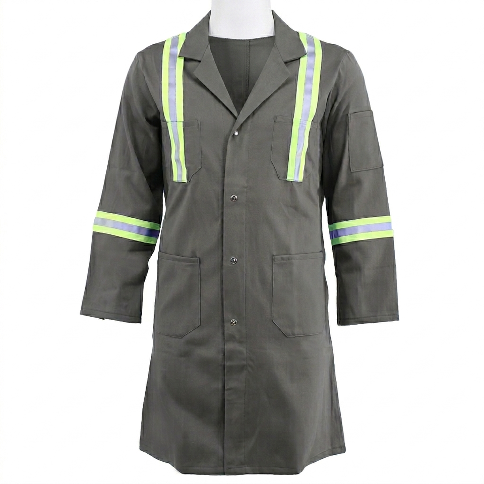 เสื้อกาวน์ผ้าฝ้าย FR 100% ทนไฟ ระบายอากาศได้ดี สำหรับใช้ในอุตสาหกรรมและห้องปฏิบัติการเคมี