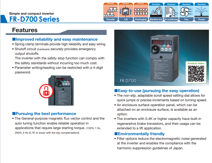 ชื่อแบรนด์:Mitsubishi Electric Inverter Type FR-D700