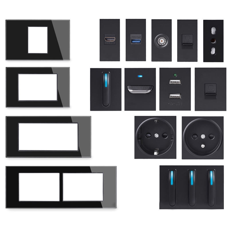 เต้ารับไฟฟ้าแบบ EU UK สำหรับทีวี รองรับเครือข่าย SA แบบเต้ารับ Type C USB 1 2 3 4 ช่อง แบบ 2 ทาง พร้อมปุ่มกดรีเซ็ต แผงกระจก DIY ประกอบเองได้