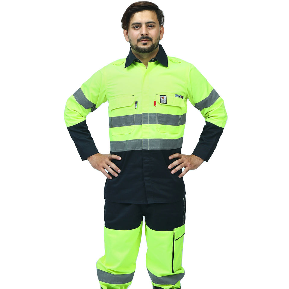 ODM เสื้อผ้านิรภัยแบบปรับแต่งได้2ชิ้นผ้ากันไฟมองเห็นได้ชัดเจน