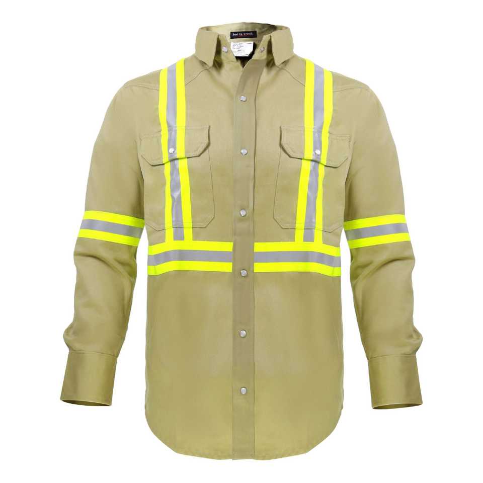 FR เสื้อผ้านิรภัย Hi VIS มองเห็นได้ชัดเจน-ผ้าฝ้าย88%/12% ไนลอนทน7oz-Flame สีกากีปานกลาง (ขนาดกลาง)