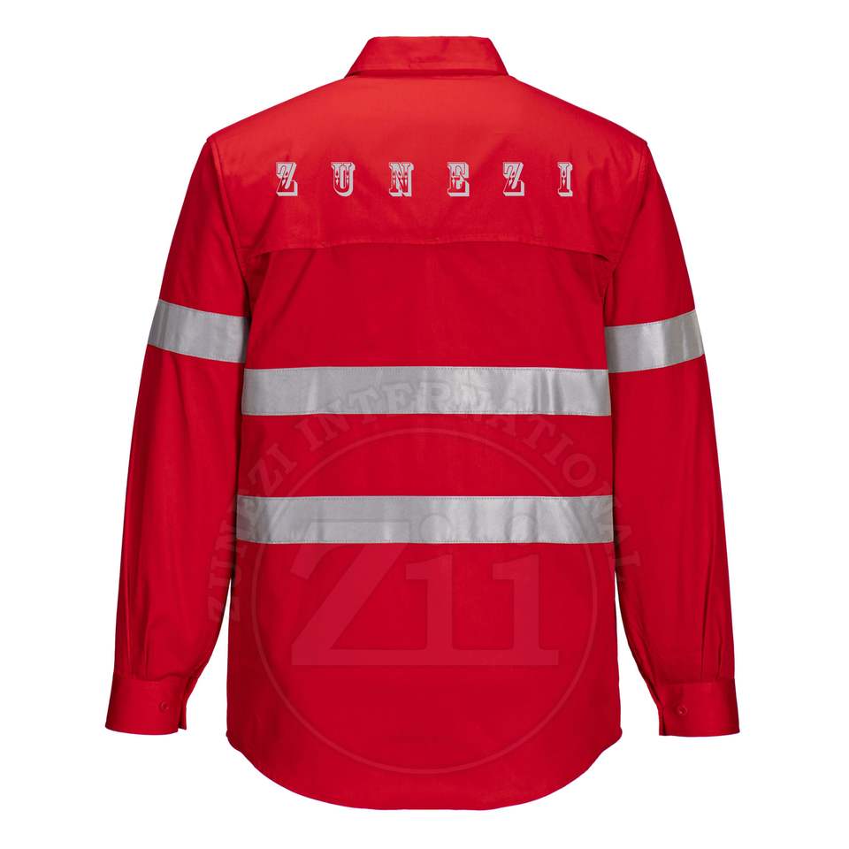 ชุดเชื่อม FR สำหรับช่างเชื่อมในอุตสาหกรรม ไซส์ M ป้องกันความร้อนระยะสั้น 7.5 ออนซ์ ทนไฟ CAT2 ทนความร้อน 300-500 องศาเซลเซียส