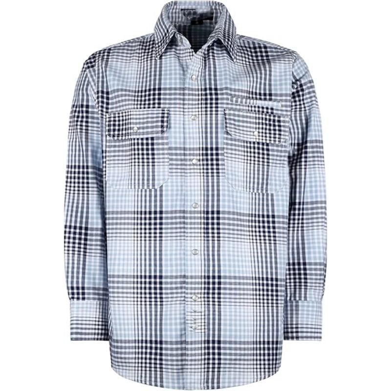 เสื้อผ้าป้องกันไฟไหม้ FRC Clothing CAT2 Arc Safety Apparel ผ้าฝ้ายทนไฟ 7.5 ออนซ์ แขนเสื้อผ้าฝ้ายทนไฟ ย้อมเส้นด้ายลายสก็อต ป้องกันไฟไหม้ กระดุมยูเรียทนไฟ