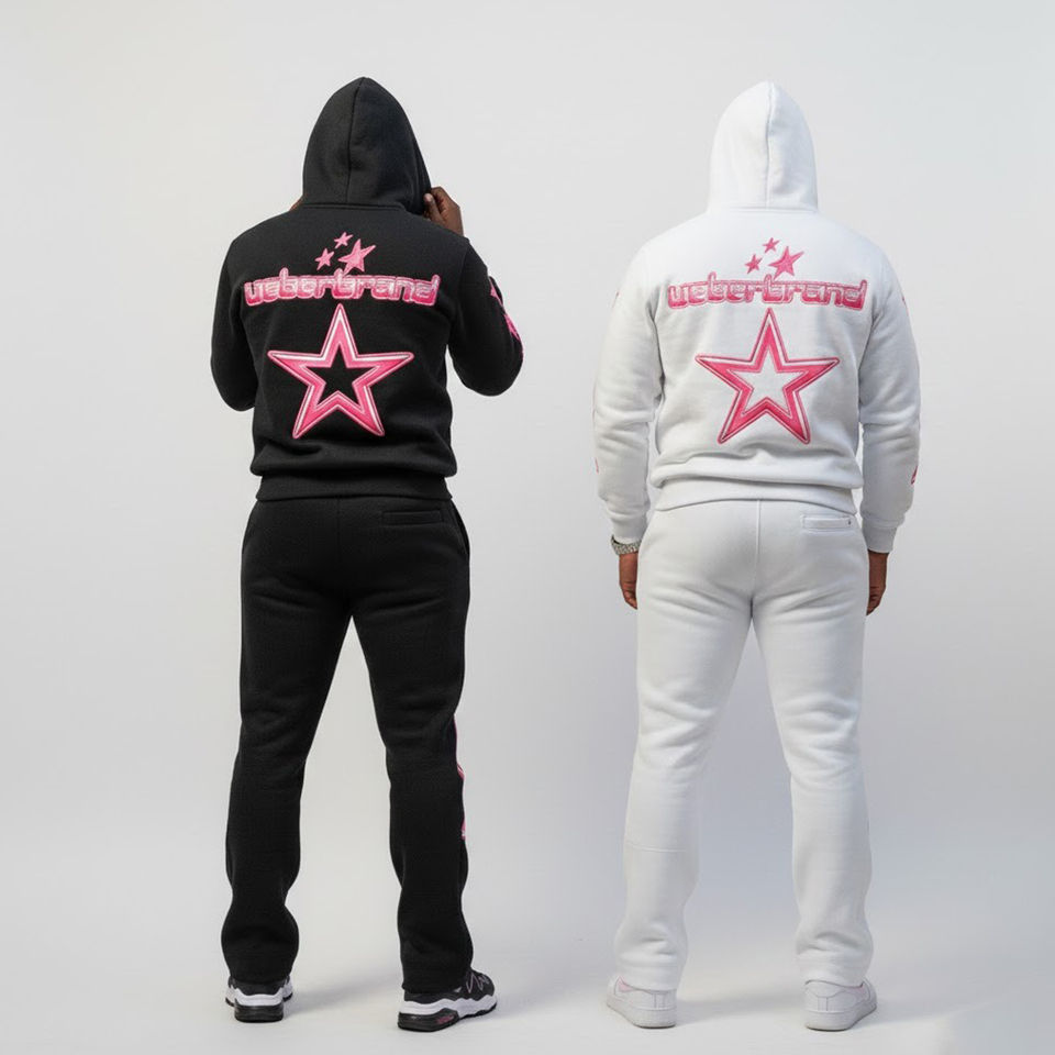 ชุดวอร์มสกรีนลายแบบฟรีม็อกอัพ ล้างสีแบบแอซิดวอช ทรงโอเวอร์ไซส์ ผ้าฟลีซคอตตอน 100% สำหรับทั้งชายและหญิง ผู้ผลิตขายส่ง