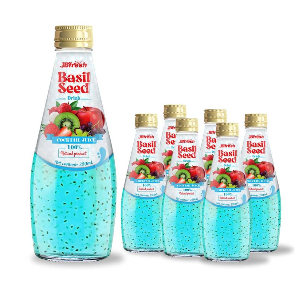 ตัวอย่างฟรี เครื่องดื่มเมล็ดโหระพา JBFRESH ขนาด 290 มล. บรรจุขวดแก้ว รสเสาวรส ได้รับมาตรฐาน BRCGS รับผลิตแบบ OEM ODM โดยผู้ผลิตเครื่องดื่ม
