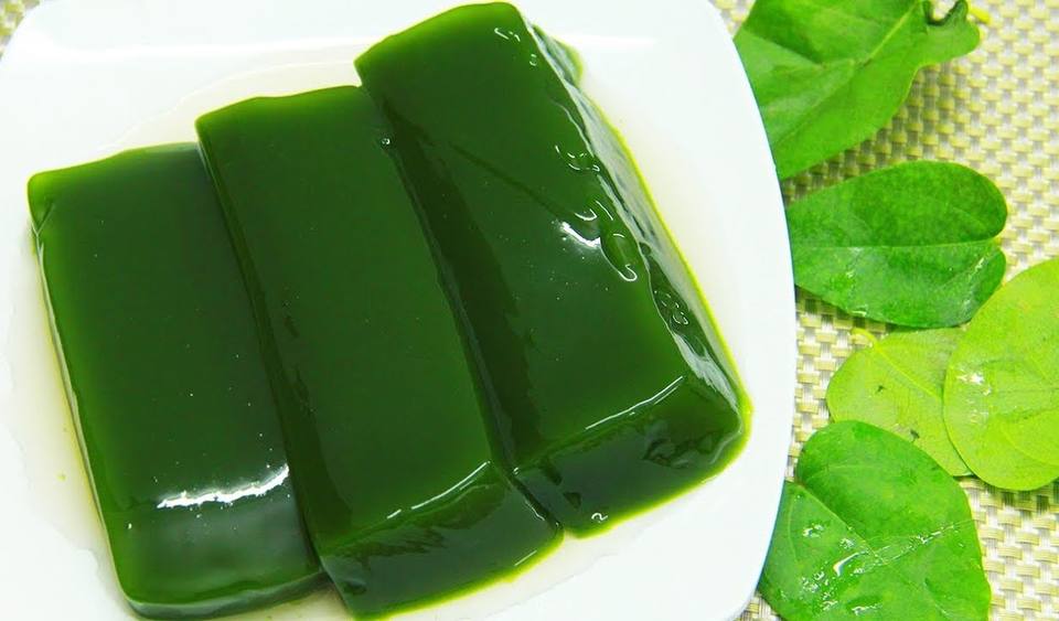 ทดลองใช้งานตัวอย่างใบหญ้าสีเขียวหรือ tilacora triandra สำหรับทำซุปหวานและเจลลี่