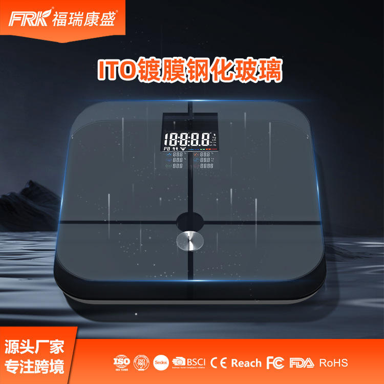 เครื่องชั่งน้ำหนักอัจฉริยะ FRK สำหรับวัดไขมันในร่างกาย หน้าจอสี รองรับการเชื่อมต่อบลูทูธ รองรับน้ำหนักได้ถึง 180 กก. พร้อมคุณสมบัติ ITO สำหรับแอปพลิเคชันบลูทูธ