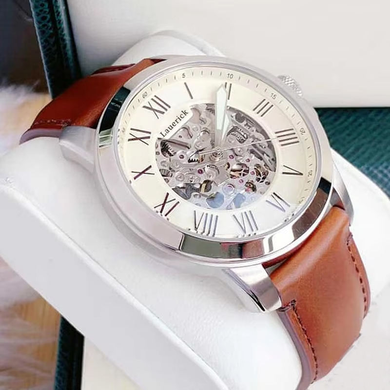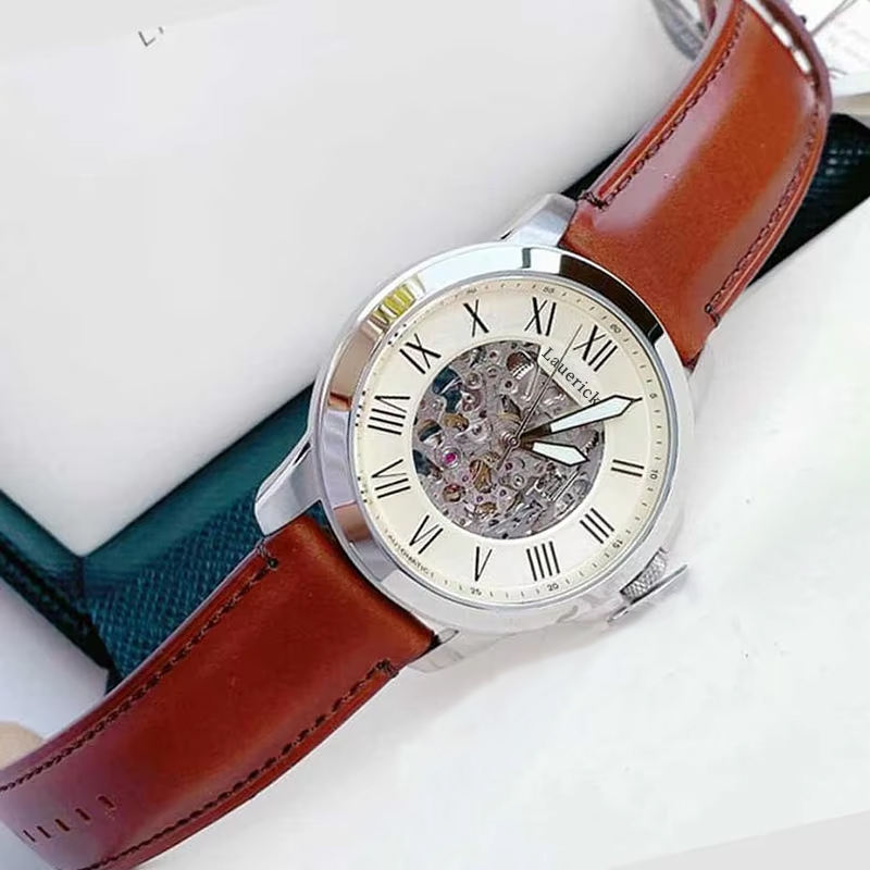 นาฬิกาข้อมือผู้ชายสุดหรู ระบบออโตเมติก ดีไซน์คลาสสิก คุณภาพสูง เข็มเรืองแสง หน้าปัดใหญ่ กันน้ำ 50 เมตร สายหนัง