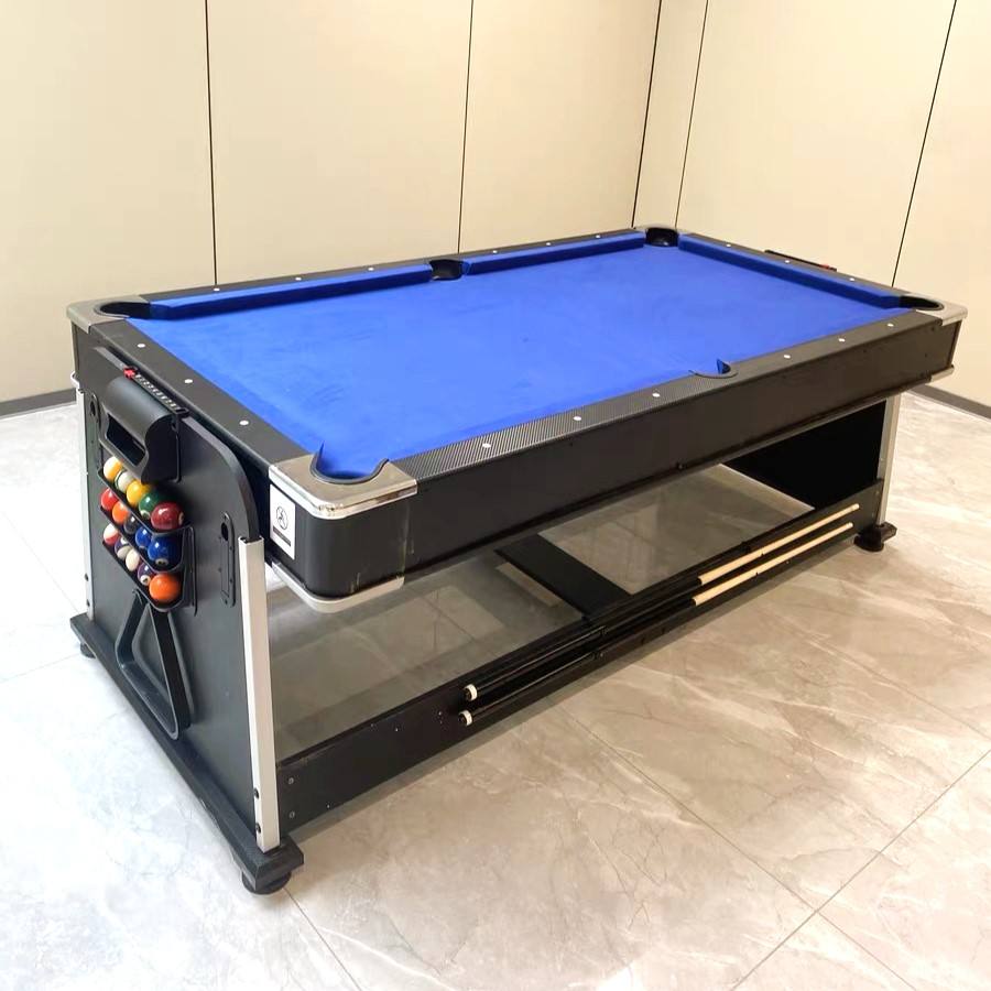 โต๊ะสนุกเกอร์อเมริกัน FS-T9 ขนาด 7 ฟุต 4-in-1 พร้อมเบาะผ้าขนสัตว์ 100% ช่องใส่ลูกแบบหนัง โต๊ะปิงปอง และโต๊ะแอร์ฮอกกี้ พร้อมท็อปสำหรับรับประทานอาหาร ทนทาน
