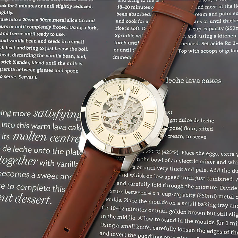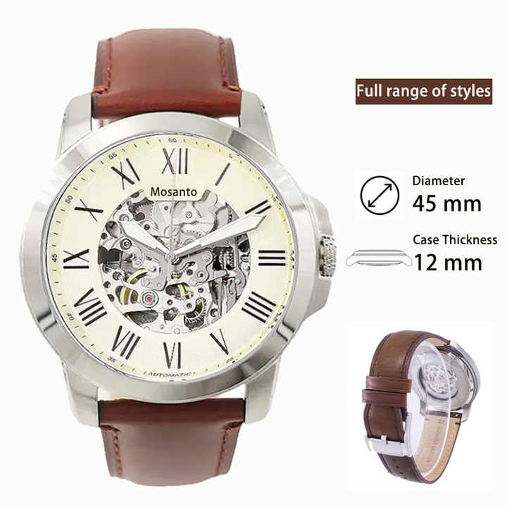 นาฬิกา FS ME3099หรูหราคลาสสิกของผู้ชายนาฬิกาเคลื่อนไหวอัตโนมัติที่มีคุณภาพสูงนาฬิกาข้อมือชุบทองตัวชี้ใบหน้าใหญ่กันน้ำ