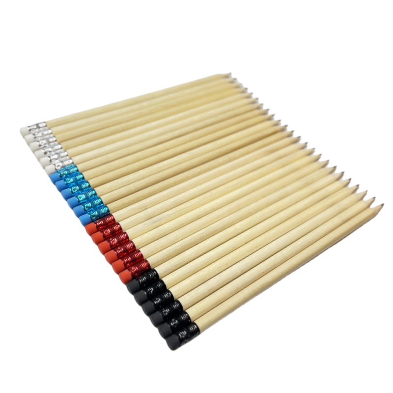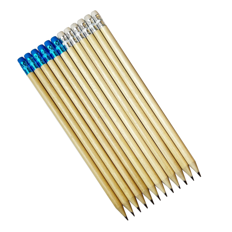 ดินสอไม้กลม FSC ขายส่ง พร้อมยางลบสี ปลายดินสอแบบกำหนดเองได้ พร้อมโลโก้และบรรจุภัณฑ์ ได้รับการรับรองมาตรฐาน EN71 และ ISO จากโรงงานโดยตรง