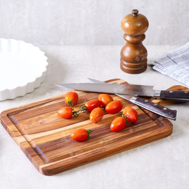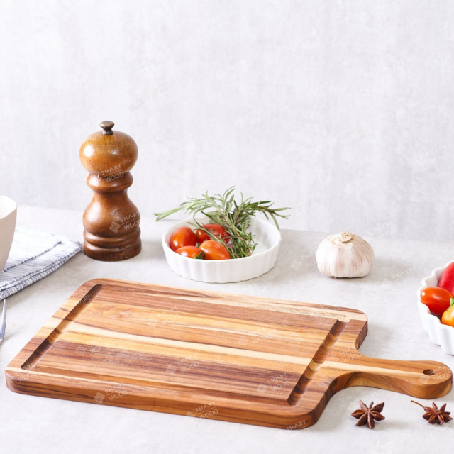 เขียงไม้สักทรงสี่เหลี่ยมผืนผ้า พร้อมด้ามจับ (หนา 1.8 ซม.) รุ่น EmeraldChef ได้รับการรับรองมาตรฐาน FSC | โลโก้แบบกำหนดเองที่เป็นมิตรกับสิ่งแวดล้อม SMW