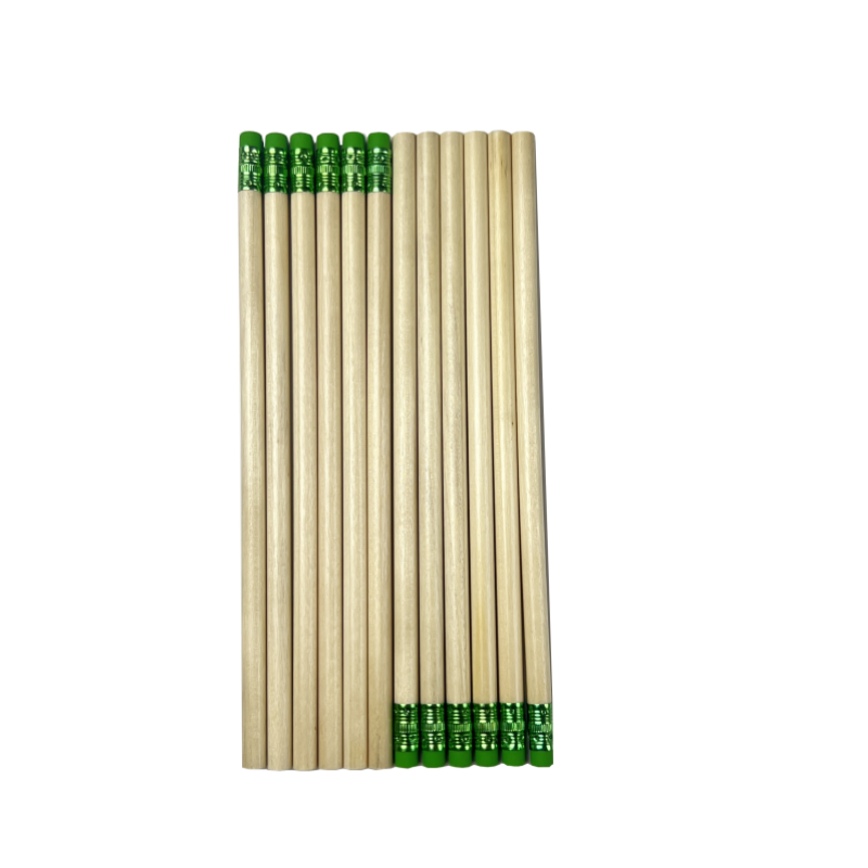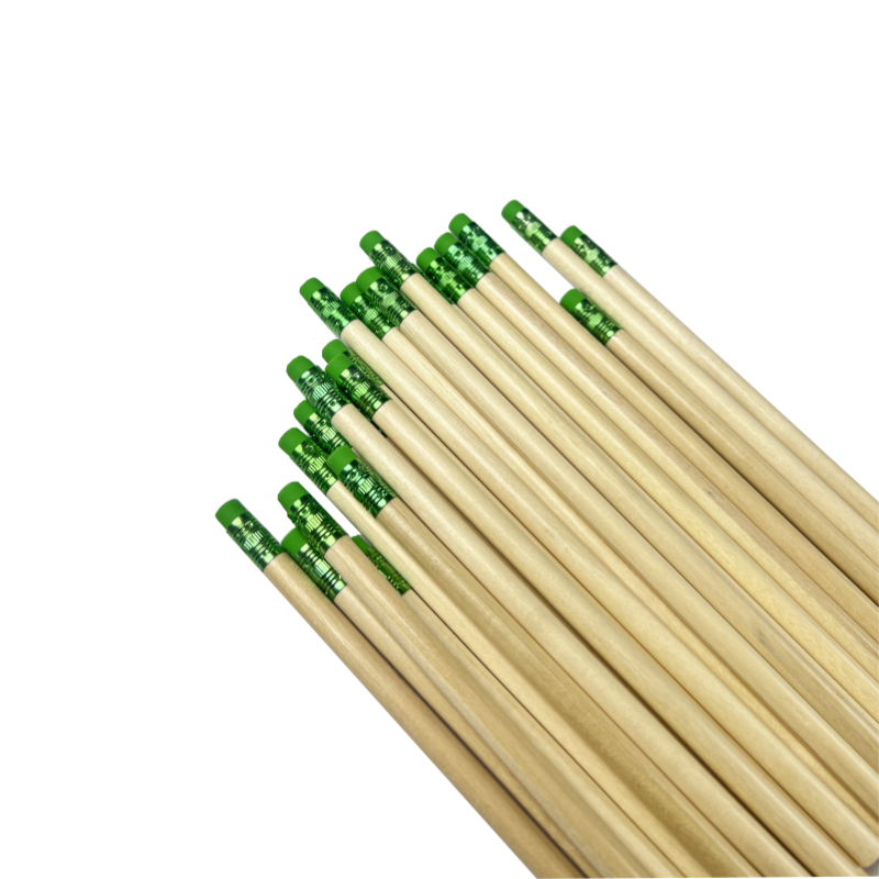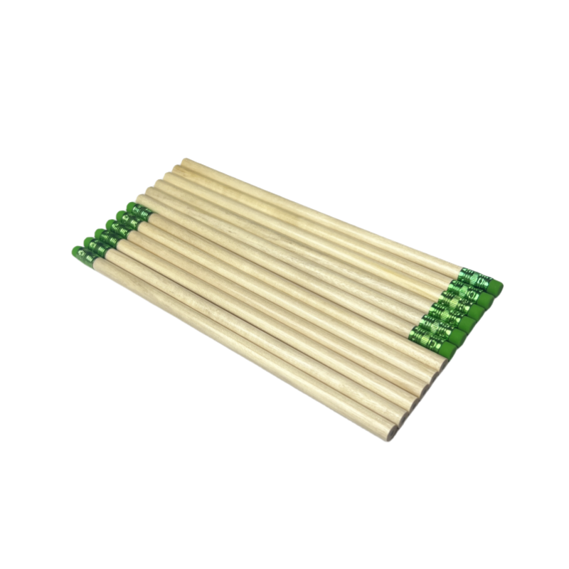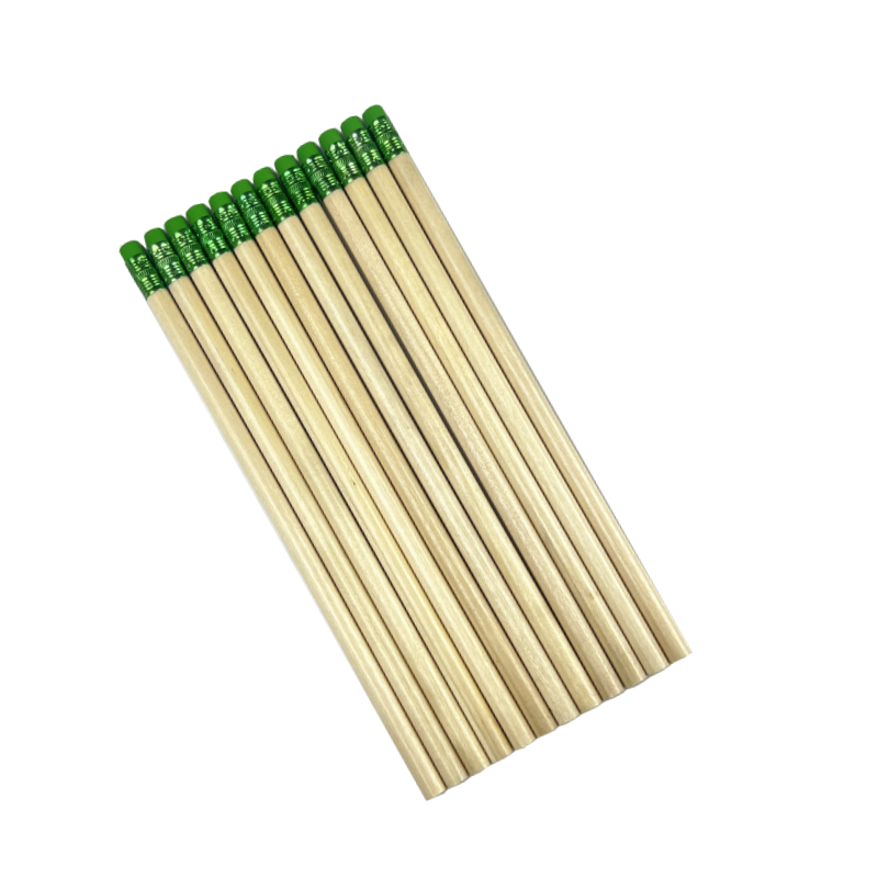 ดินสอไม้กลม FSC พร้อมยางลบสีเขียว ปลายแหลม ขายแยกชิ้น รับทำโลโก้และบรรจุภัณฑ์ตามสั่ง โรงงานได้รับการรับรองมาตรฐาน EN71 และ ISO ขายส่ง