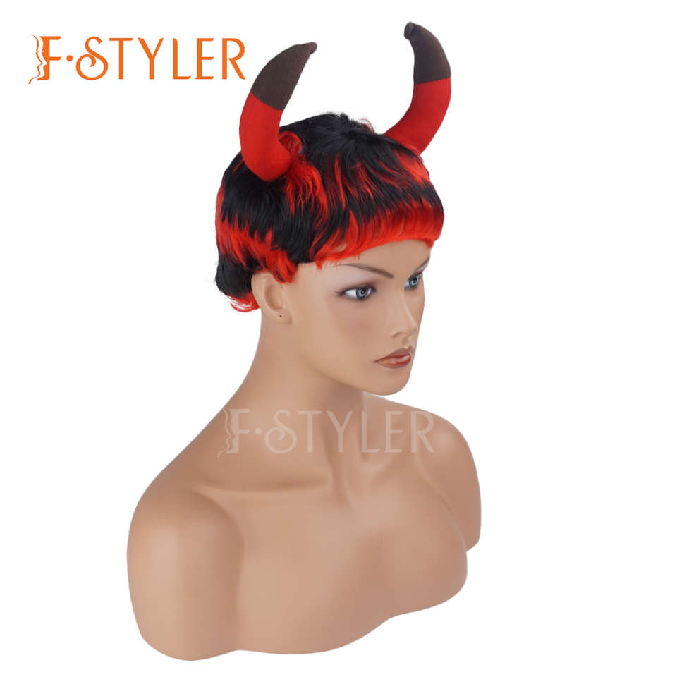วิกผมสังเคราะห์สีฮอร์นปีศาจแดงคอสเพลย์ราชินีเด็กผู้ชายเด็กผู้หญิง