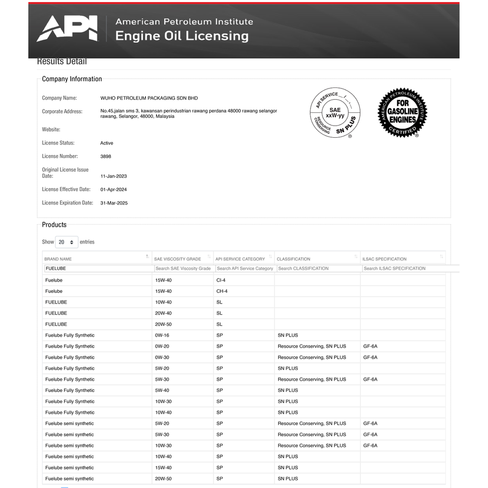 ใบรับรอง:อุปกรณ์ GF-6A API SP ilsac