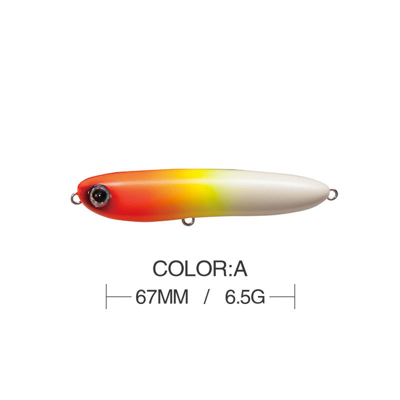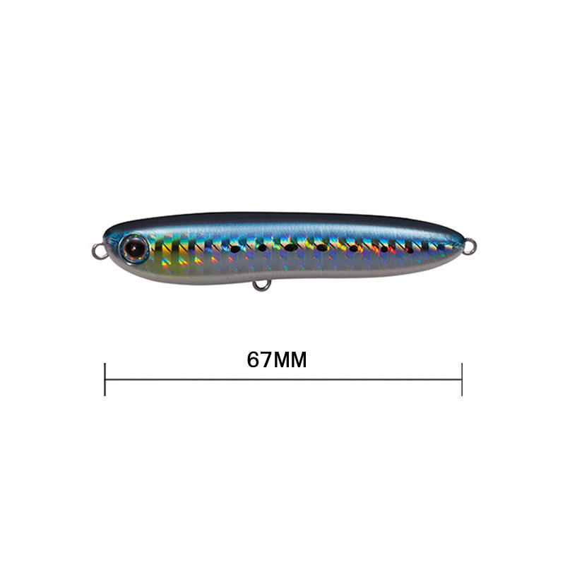 เหยื่อปลอมแบบลอยน้ำ สแตนเลส รูปทรงดินสอ ไมโครมิโน 67 มม./6.5 กรัม เหยื่อแข็ง สำหรับตกปลาแบส ลายแถบสีขาว พร้อมตะขอ สีเก่า