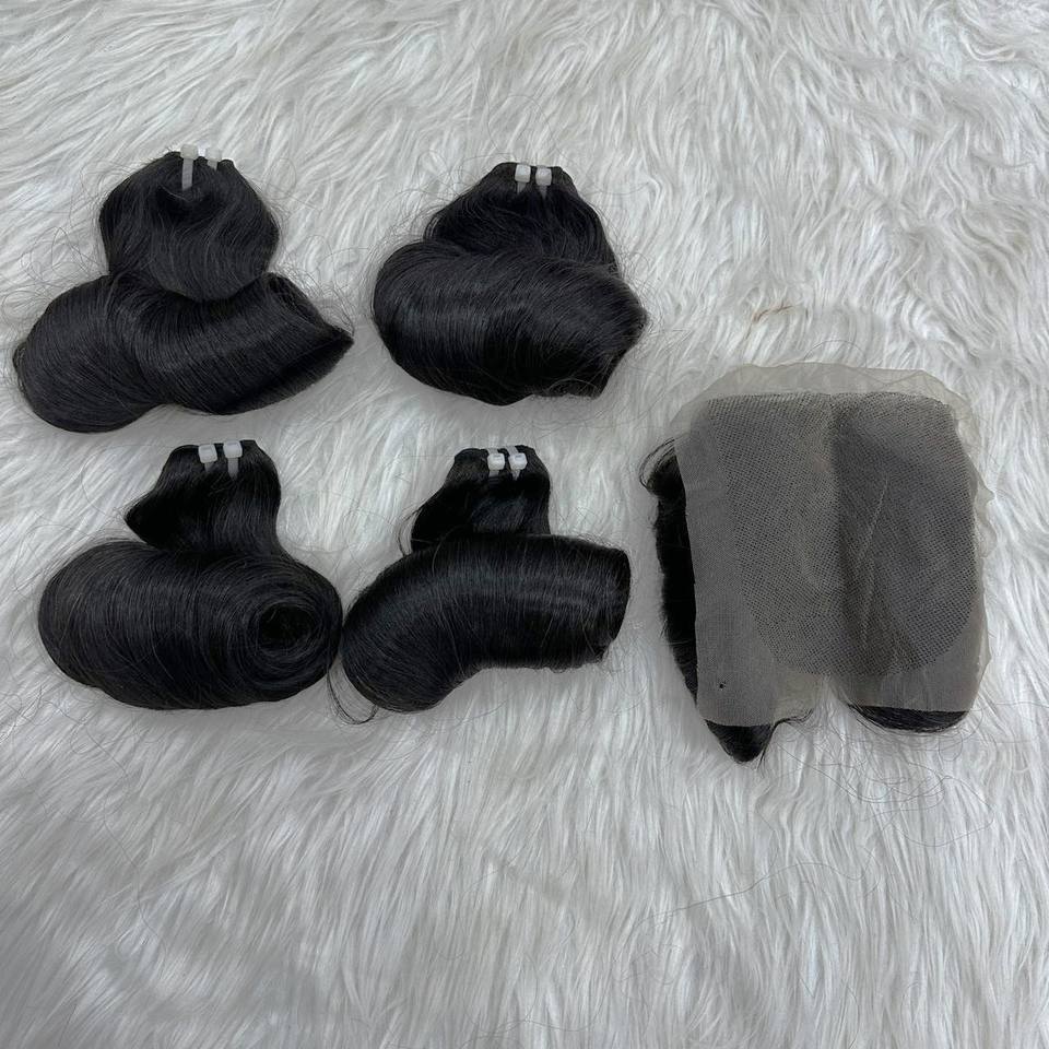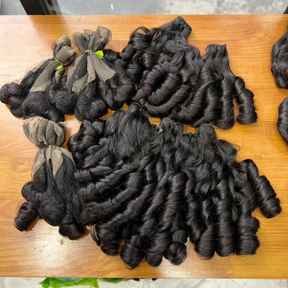 Fungmi ผมต่อจากเวียดนามแท้100% ผม Remy หยิกเด้งสีดำธรรมชาติมัดคู่ผมมนุษย์ทอ100กรัม