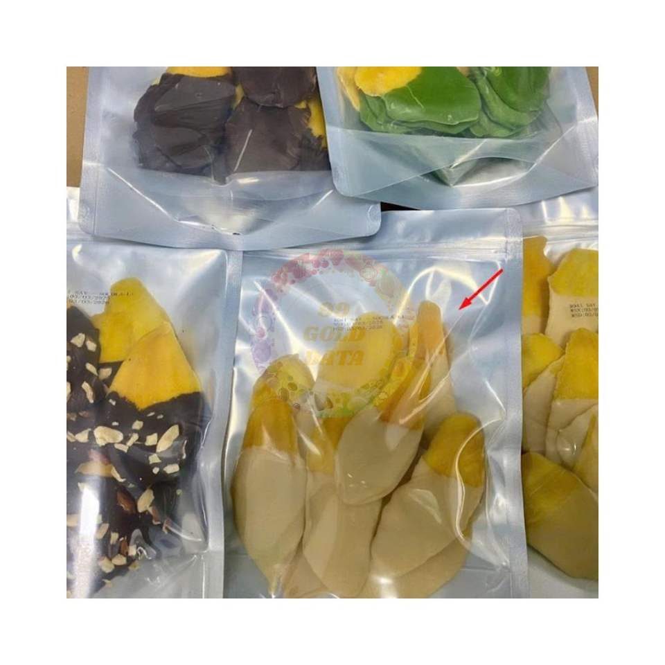 ช็อกโกแลตชิปแสนสนุกพร้อมมะม่วงอบแห้งแบบนุ่ม ขายส่งแบบซิปแพ็ค มะม่วงอบแห้งเคลือบช็อกโกแลต ผลิตตามสั่งสำหรับซูเปอร์มาร์เก็ตและร้านค้าปลีก