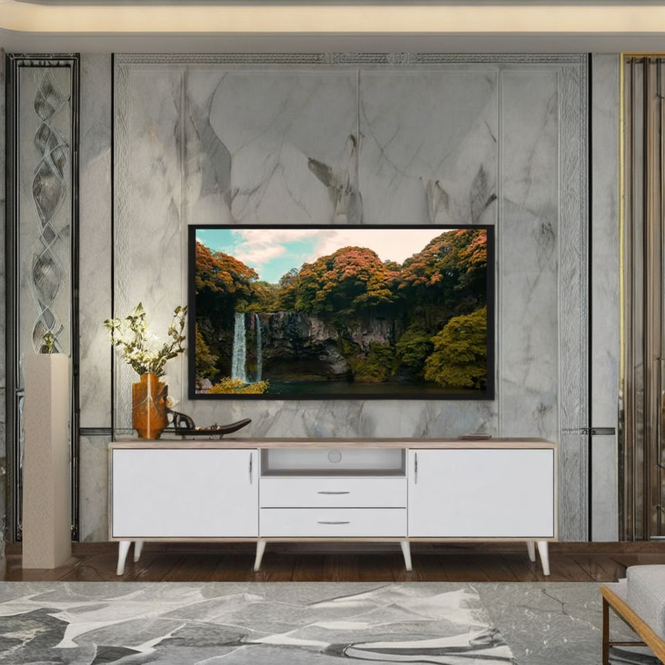 เฟอร์นิซอน ตู้วางทีวีไม้สไตล์โมเดิร์น พร้อมชั้นวางของในตัว ดีไซน์แผงไม้ ติดตั้งแบบตั้งพื้น สำหรับห้องนั่งเล่น รุ่น 26_0142