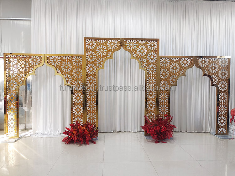 Furun ซุ้มโลหะลายดอกไม้สุดหรูฉากหลังแกะสลักซุ้มแต่งงานสำหรับตกแต่งงานปาร์ตี้