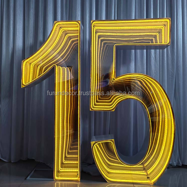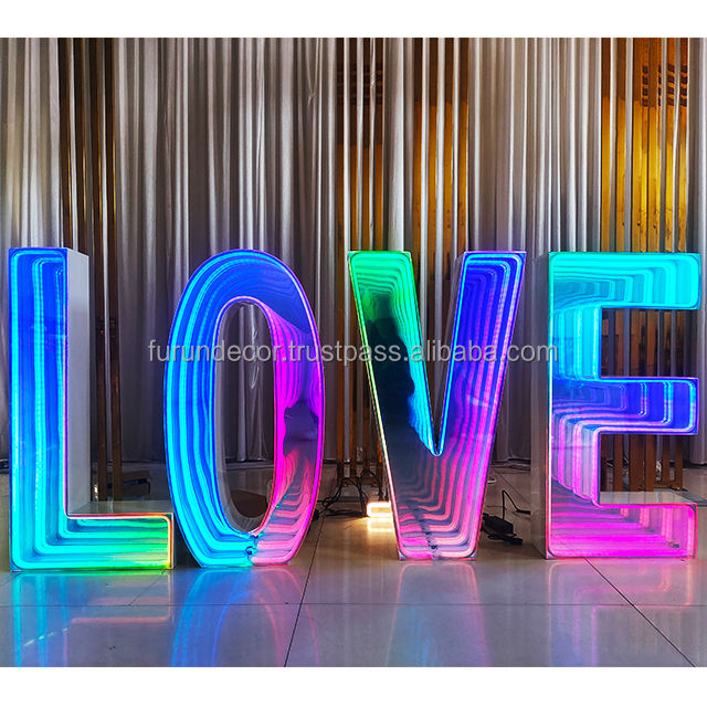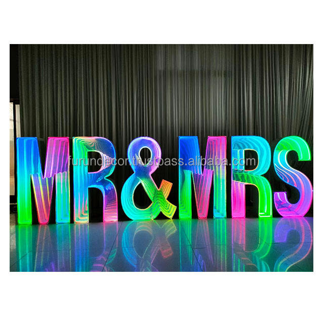 ไฟตัวอักษรและตัวเลขโลหะขนาดใหญ่แบบถอดได้ สไตล์โมเดิร์นคลาสสิกโรแมนติก พร้อมไฟ RGB ของโรงงาน FURUN สำหรับงานแต่งงานและงานวันเกิด