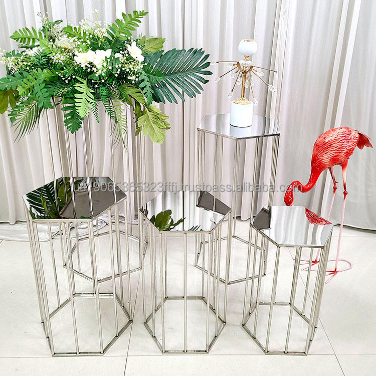 ชุดโต๊ะเค้กสแตนเลสทรงหกเหลี่ยมคุณภาพสูง ทนทาน ยี่ห้อ FURUN สำหรับงานแต่งงาน งานเลี้ยง และพิธีพิเศษ จำนวน 3 ชิ้น