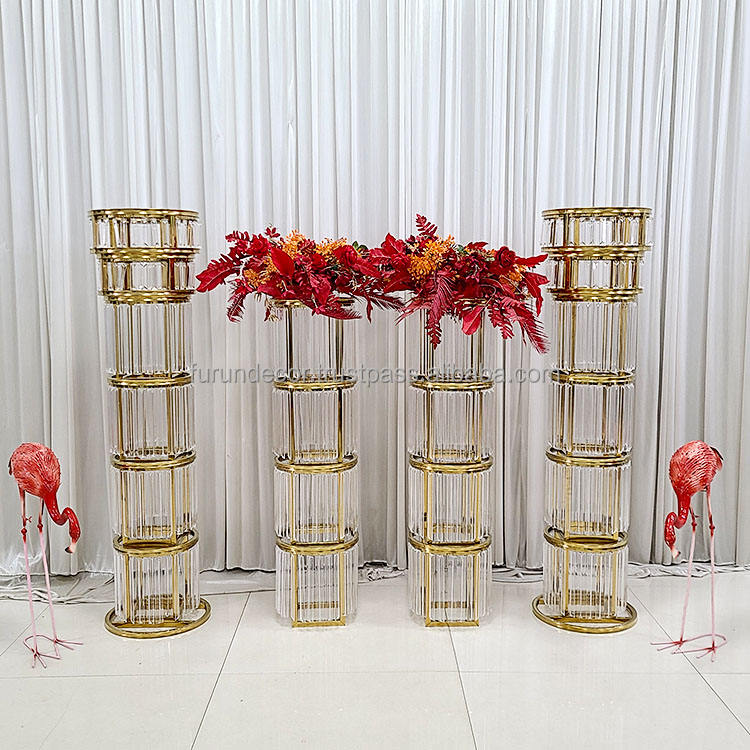 Furun โต๊ะกลางโต๊ะสำหรับงานแต่งงานสุดหรูเสาดอกไม้ทำจากสเตนเลสสตีลสีทอง