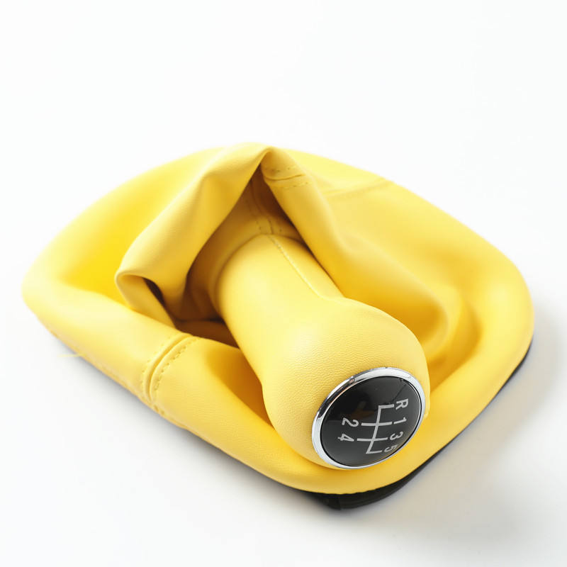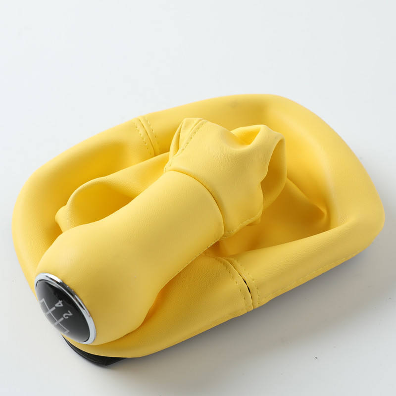 ปลอกหุ้มหัวเกียร์รถยนต์ FUXIN สำหรับ VW Golf 3 4 5 เกียร์ธรรมดา สีเหลือง หนังเทียม อะไหล่ทดแทน
