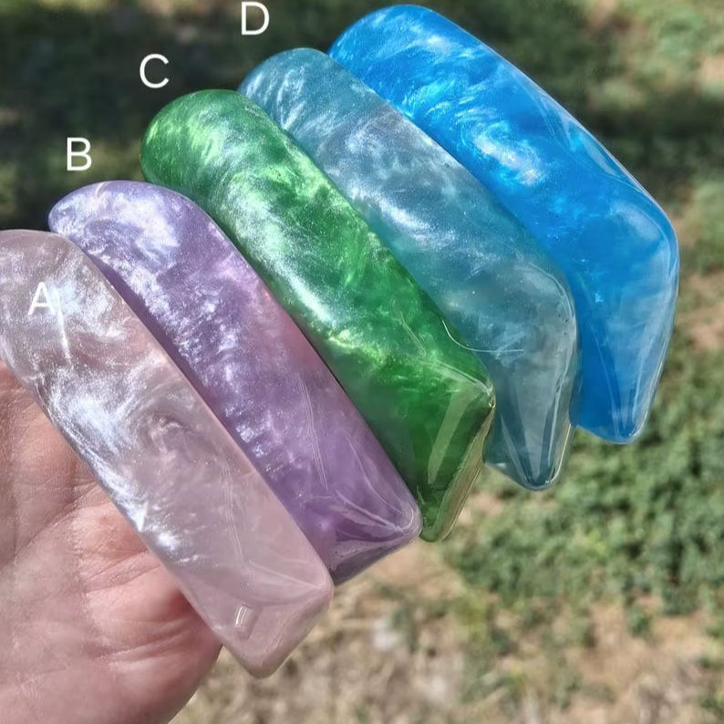 Fy กำไลข้อมืออะคริลิคแบบหนาและใหญ่สร้อยข้อมืออะซิเตทที่ไม่สมมาตรกำไลข้อมือสีสดใส