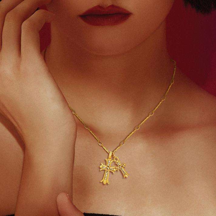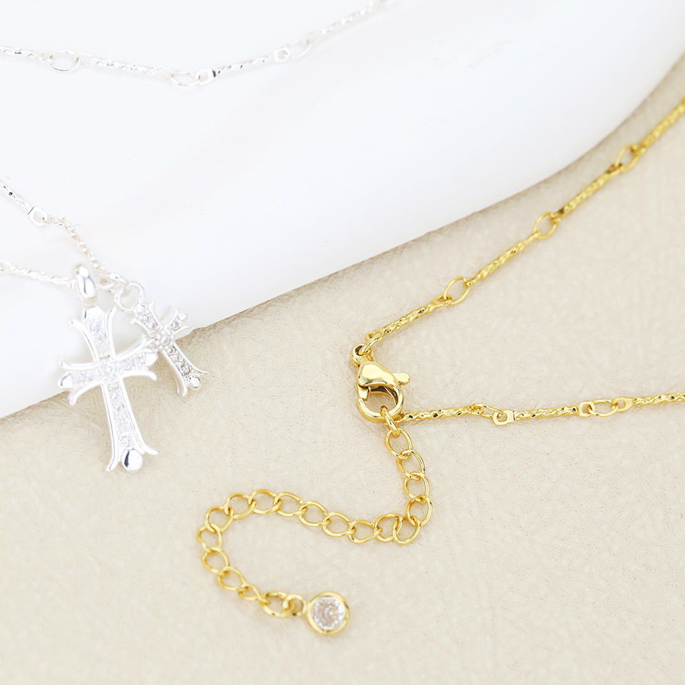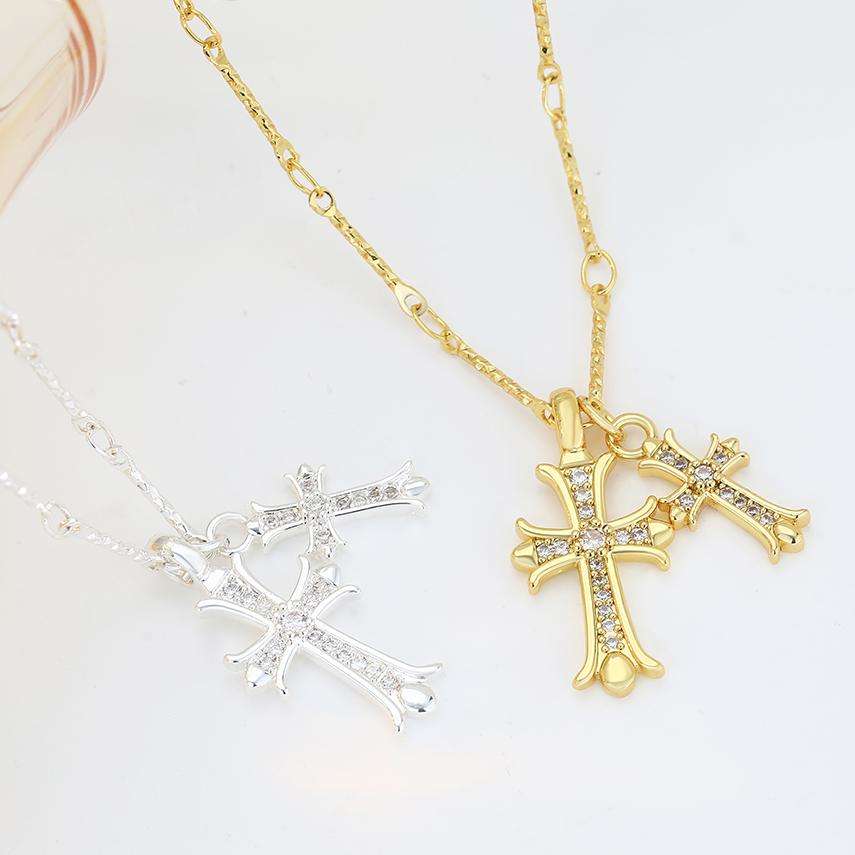 สร้อยคอจี้รูปกางเขนทองคำประดับเพชรคิวบิกเซอร์โคเนียรูปหัวใจคู่เคลือบโครเมียม ดีไซน์เก๋ไก๋สำหรับผู้หญิง จาก FY Fashion Jewelry