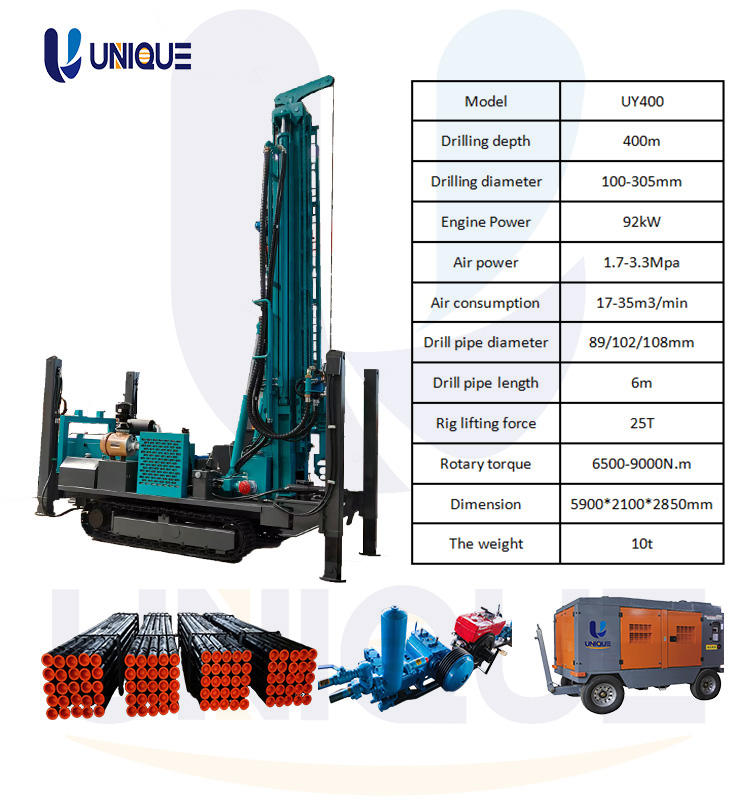 แท่นขุดเจาะบ่อน้ำ FY400ไฮดรอลิกดำน้ำลึก400ม. สำหรับโครงการชลประทานทางการเกษตรความร้อนใต้พิภพ