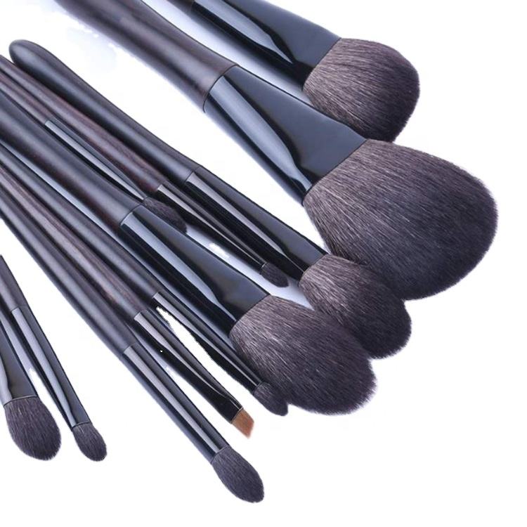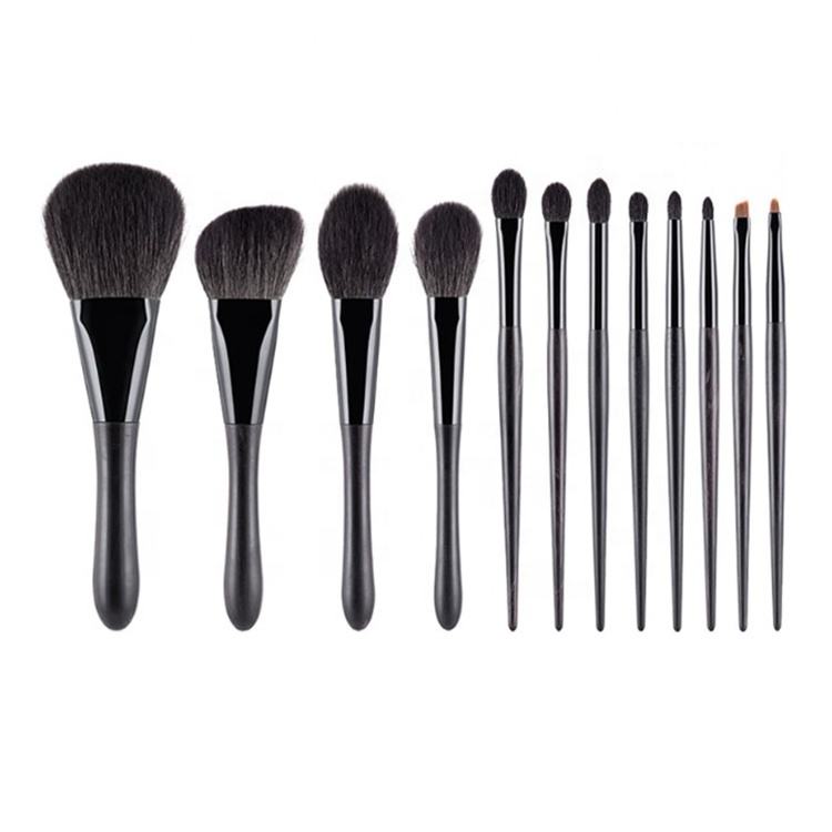 FYD ชุดแปรงแต่งหน้าคิ้วบลัชออนไม้สีดำหรูหรา,ชุดขนแพะคุณภาพสูงสำหรับ Mac 12ชิ้น